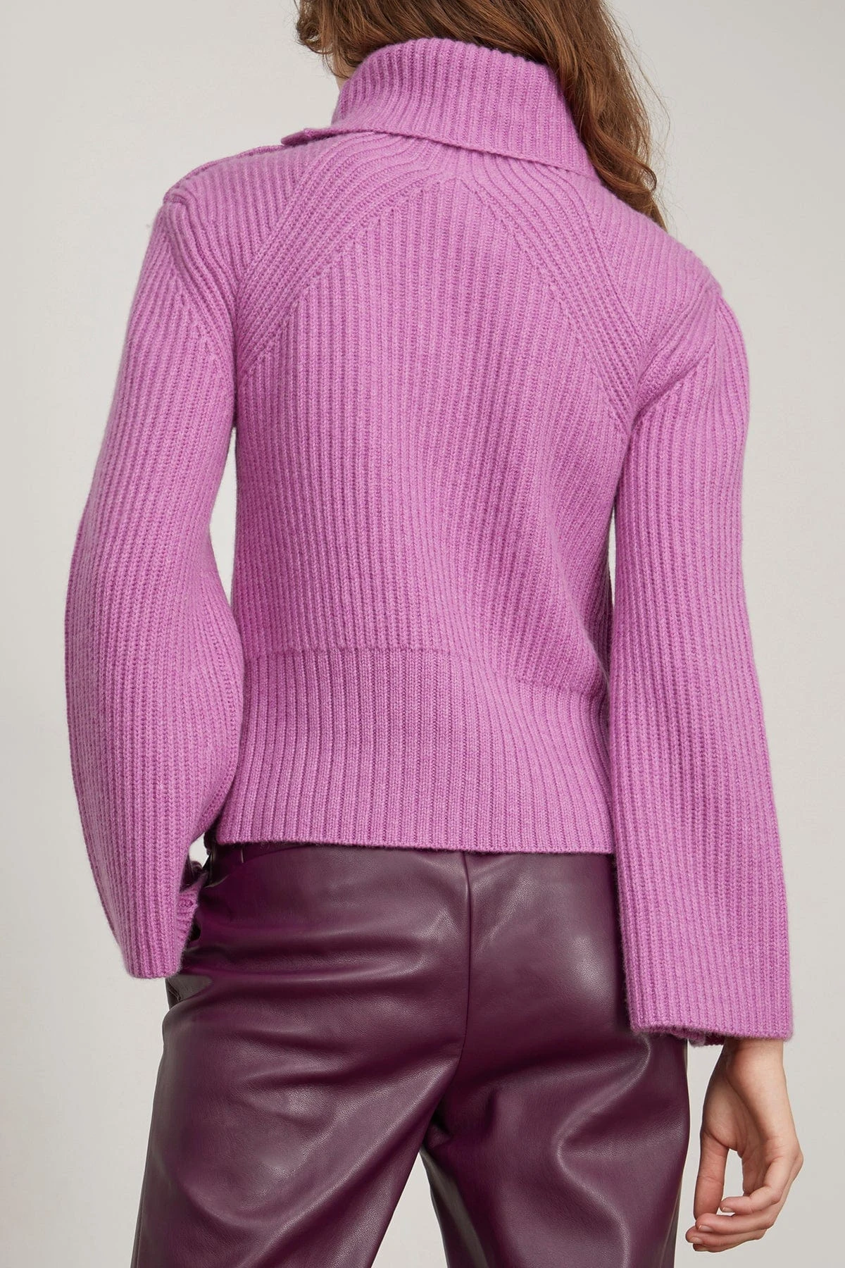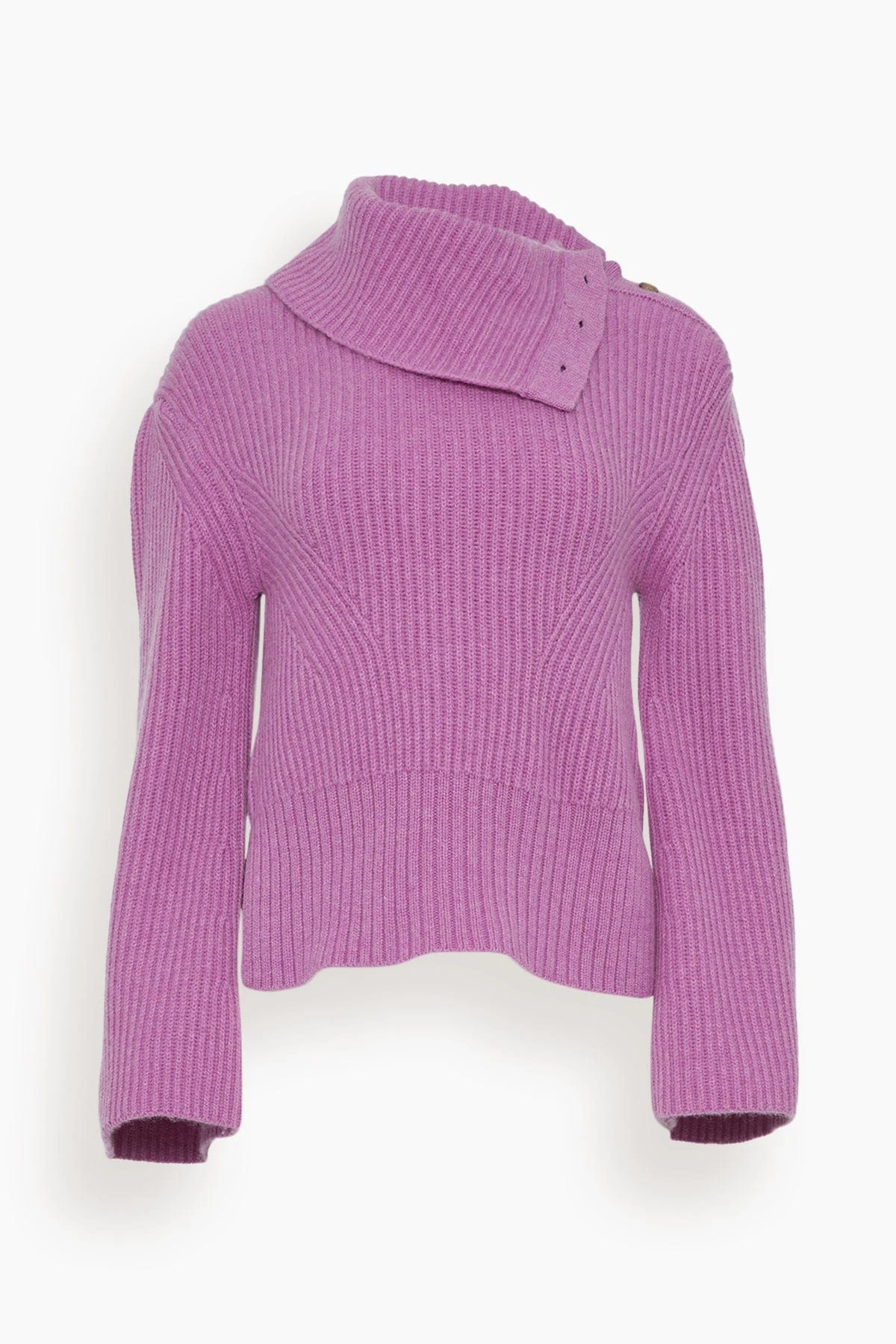 The Simkhai Adrienne Buttoned Turtleneck is a turtleneck with a button closure on the collar. This wool-cashmere blend turtleneck is perfect to pair with jeans and boots.