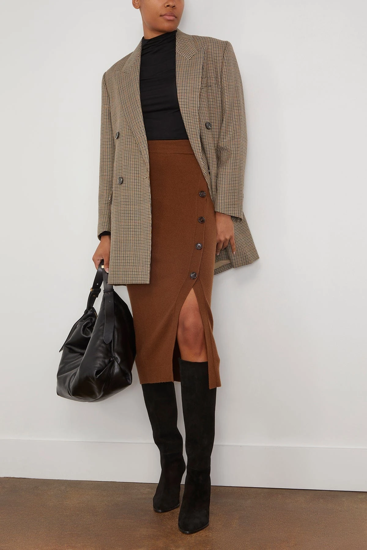 The Allude Skirt in Brown is a women’s skirt made of 70% wool and 30% cashmere is a real eye-catcher. The fine knit and the horn-look buttons make the skirt a luxurious piece of clothing. The narrow cut emphasizes the female silhouette and makes you look stylish.