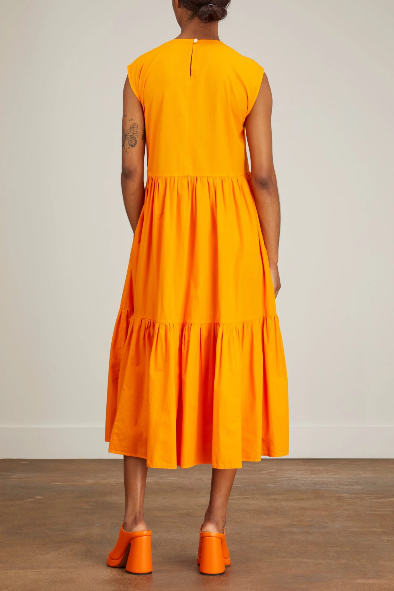 The AVN Balza Dress is a must-have piece from their Spring 23 Collection. This midi dress features a tiered silhouette in a bold orange hue. Wear yours with sandals and a crossbody bag.