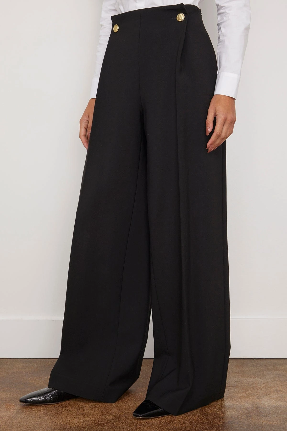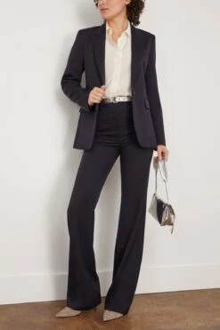Inspired by classic sailor pants, the new Rosetta Getty style features a button-down pleat across the front. Cut to a wide leg with a flattering mid-rise, they are both modern and quintessential; the Stretch Wool Scuba Suiting fabrication lends elegant drape to the relaxed yet tailored silhouette. Tailored to sharp and feminine silhouettes, it is modern and elegant: a diverse addition to any suiting wardrobe. We love it paired with the matching top and heels.