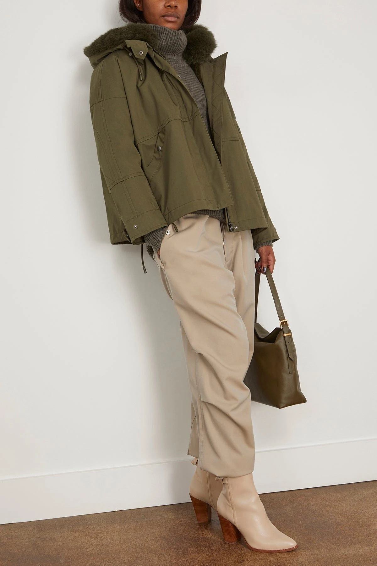 The Yves Salomon Cotton Parka Coat with Rabbit/Fox Trim will get you through the winter. This parka features a rabbit and fox trim with a water proof exterior. Wear yours with jeans and a sweater.