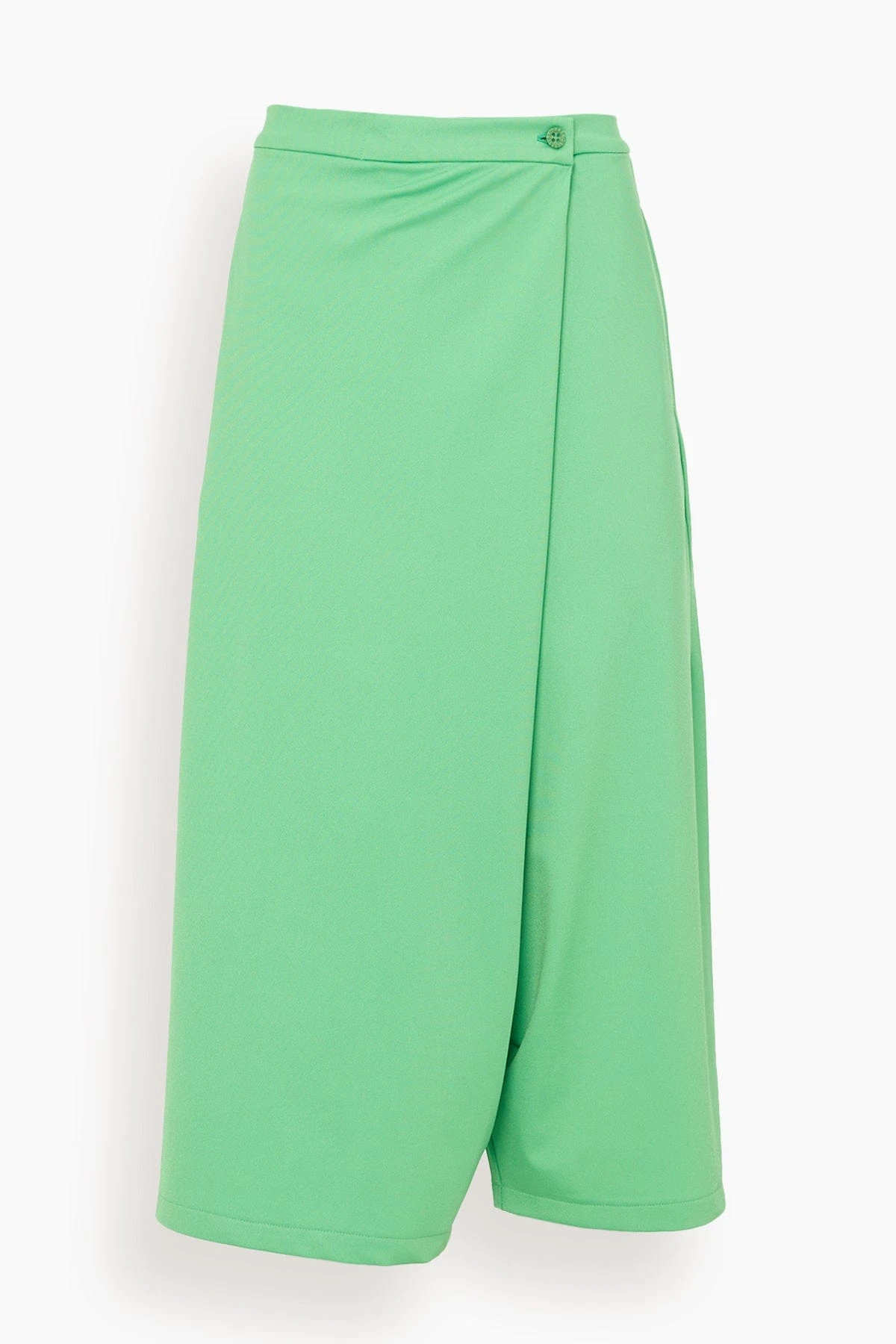 The COG The Big Smoke Hope Culottes in Apple Green are wrap-style culottes with deep tucks on the front. It looks like a straight line wrap skirt when viewed from the front. The patch pocket on the hip adds a sense of fun and the elastic insert at the back creates a perfect fit. Can be worn at the waist or slung low on the hips. The easy care and wrinkle-free 360-degree stretch fabric gives an elegant structure with a tailored impression