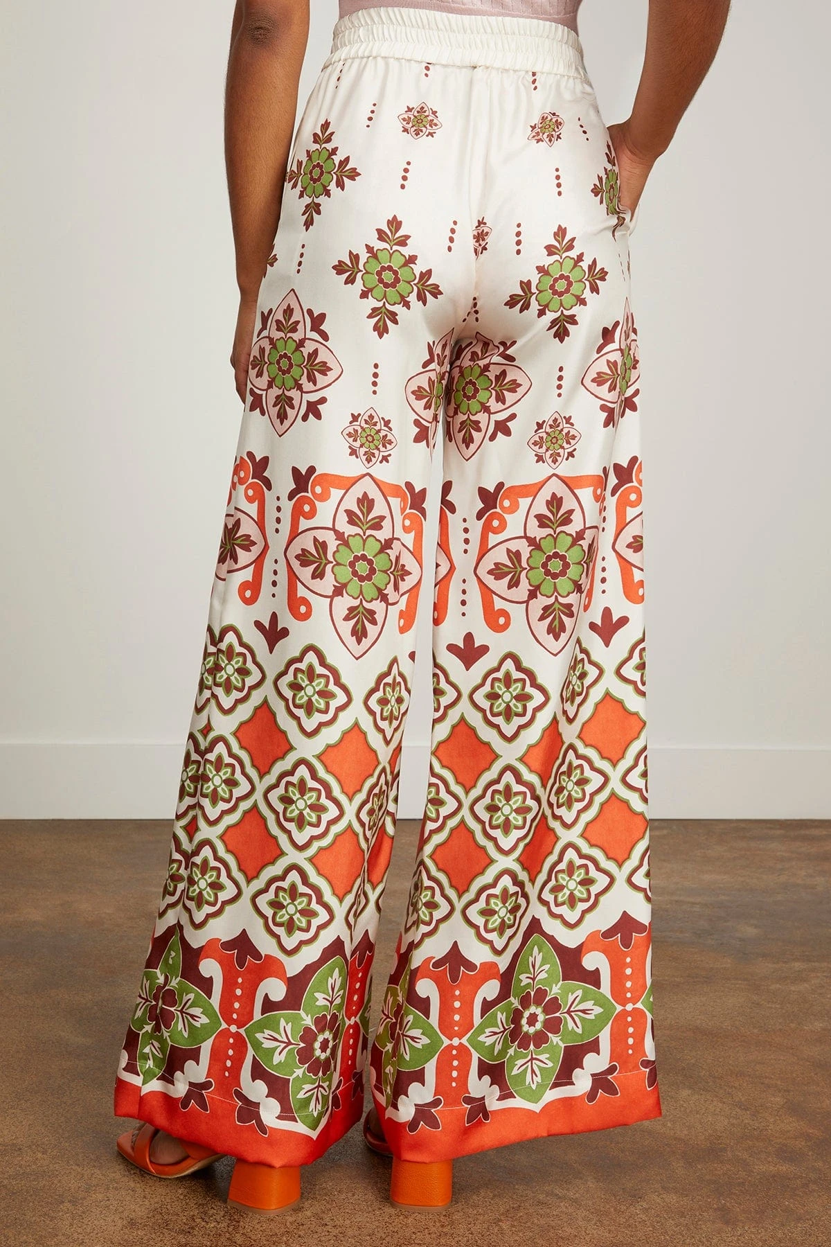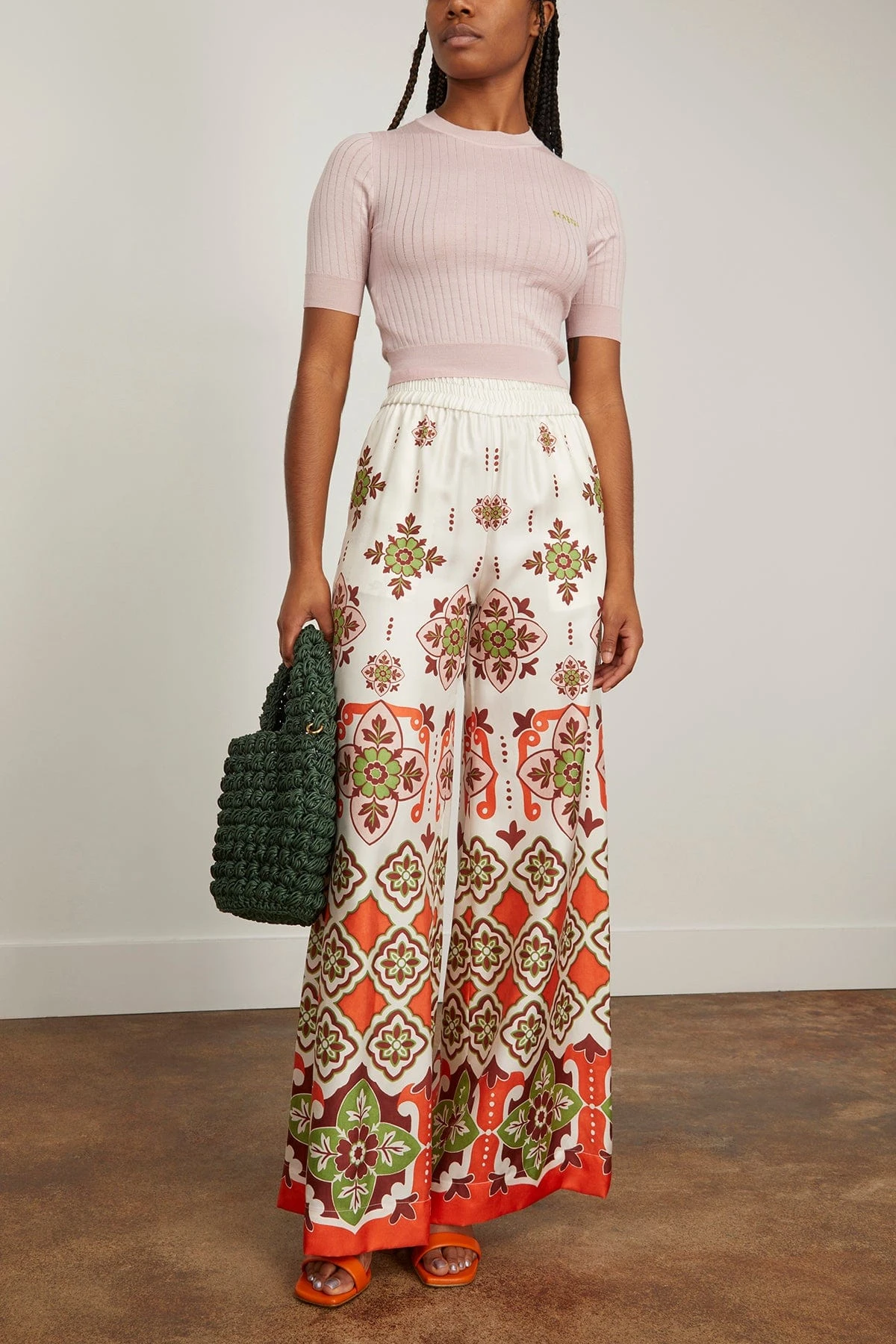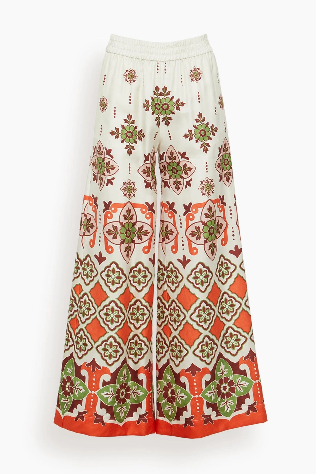 La Double J cannot take credit for inventing the Palazzo Pant silhouette, but they will take credit for making them cool again. These trousers sit on the waist and fall flared, with a wide, breezy fit through the legs like a skirt, but with the comfort of pants. They’re made in fluid silk twill from Lake Como and arrive in a sunshine print to bring the vacation mood.