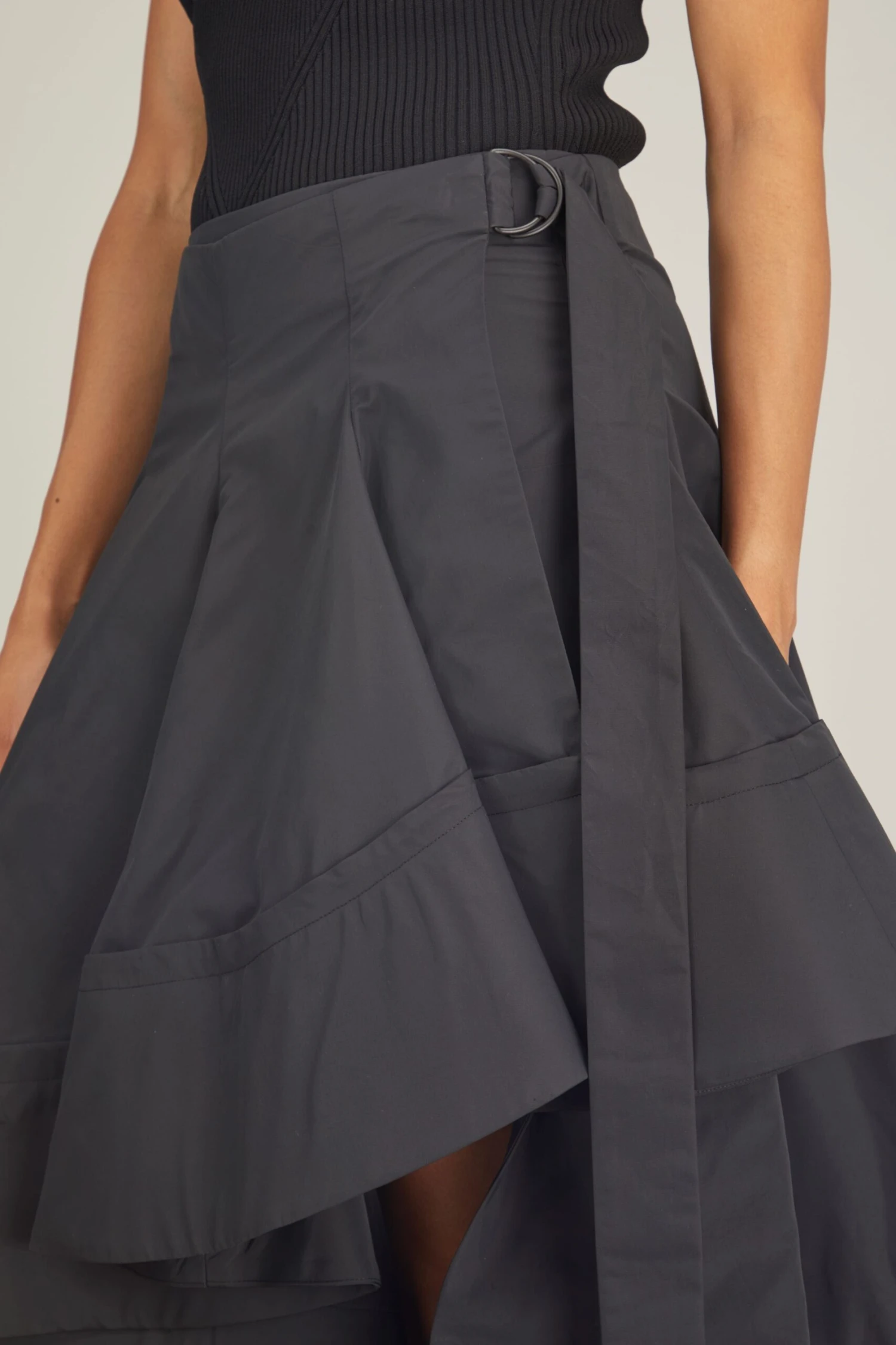 The Proenza Schouler Technical Cotton Layered Skirt will be a bold addition to your wardrobe. This midi skirt features a full silhouette with pleating and a ruffled, asymmetrical hemline. Wear yours with a blouse tucked in.