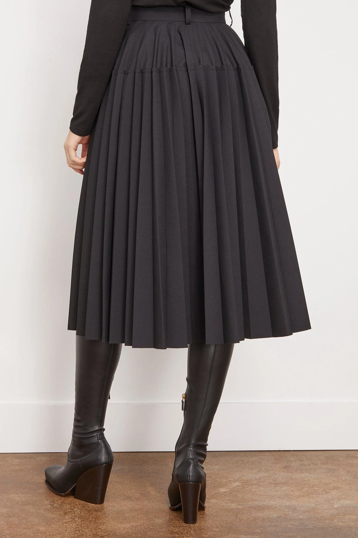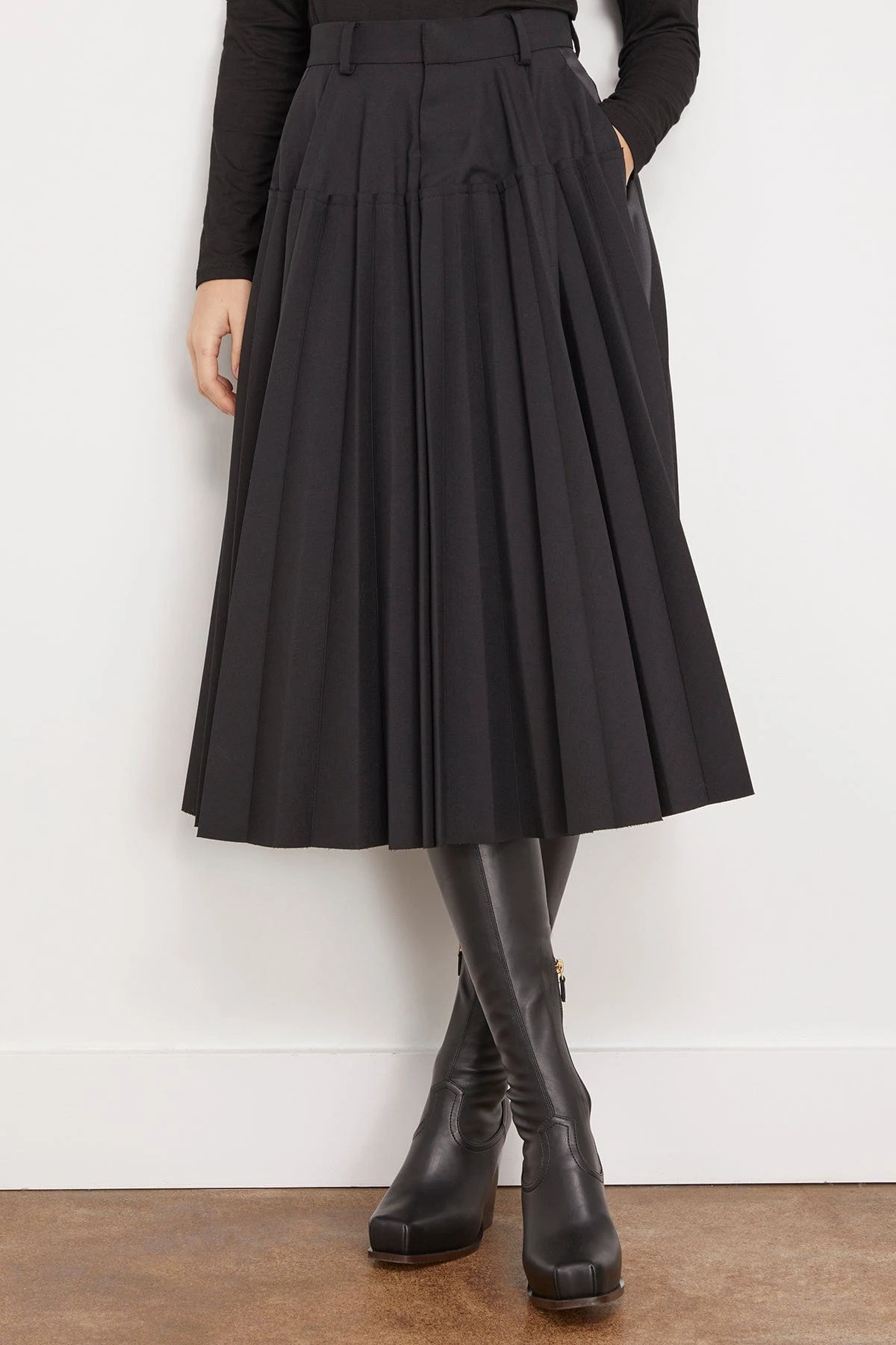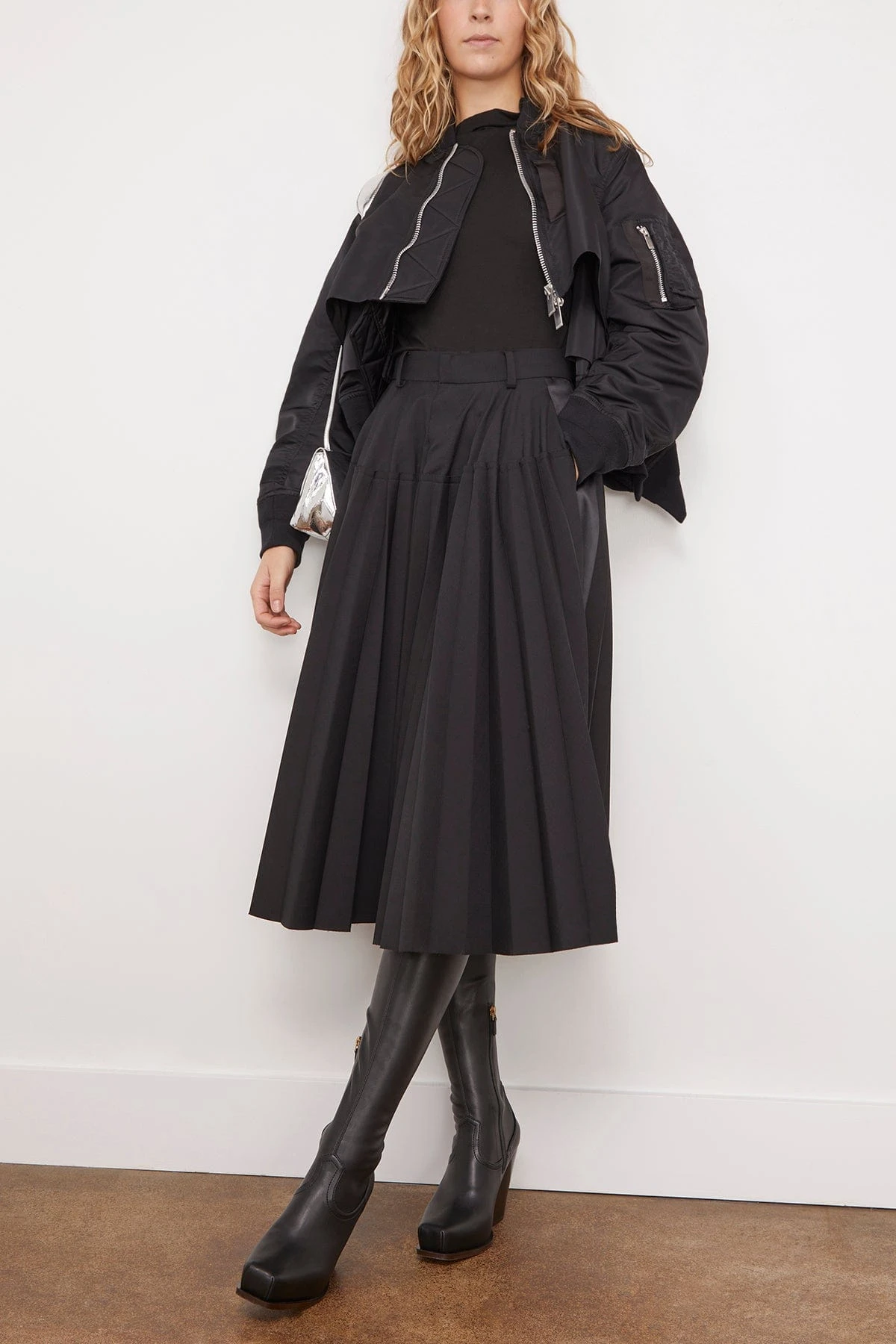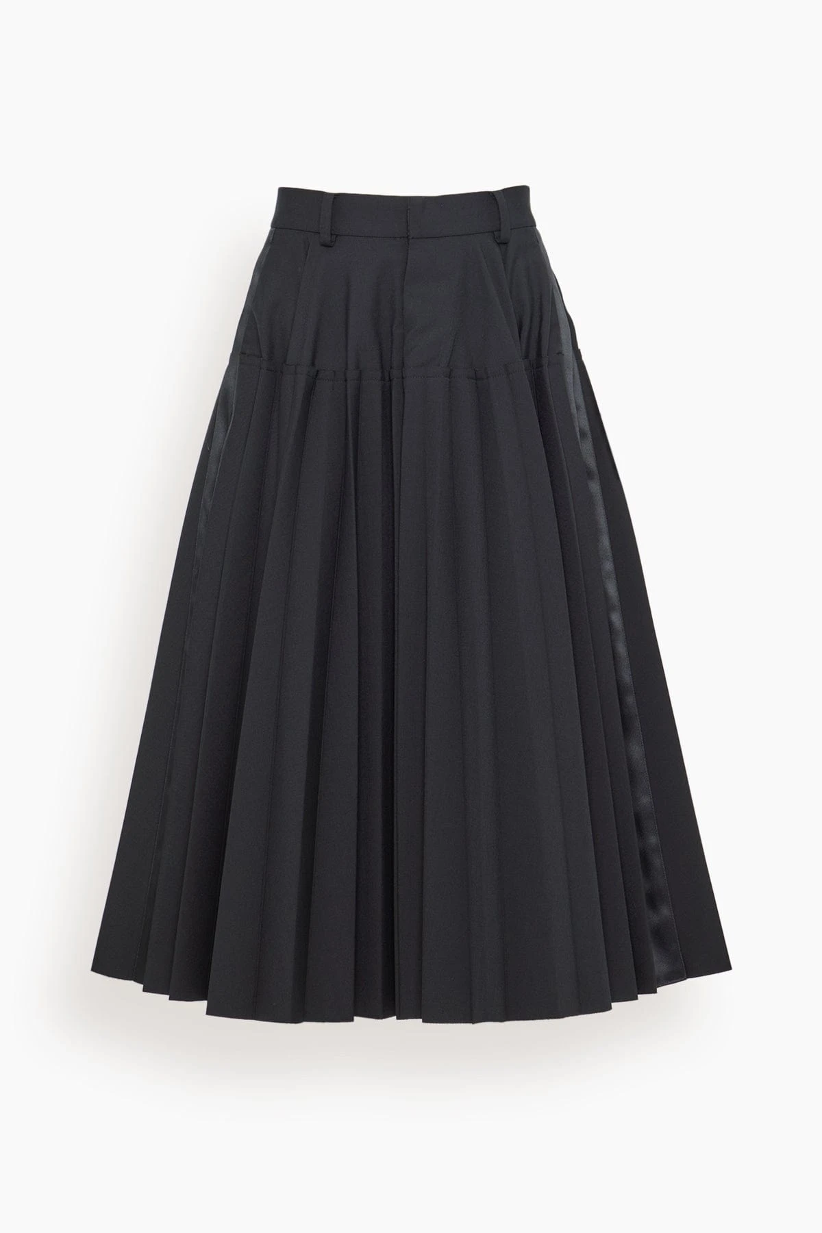 The Sacai x Carhartt Suiting Bonding Skirt in Black is this season’s perfect, black midi skirt. This skirt is a pleated suiting skirt with belt loops and full silhouette. We love this midi skirt pared with combat boots and a cropped jacket.