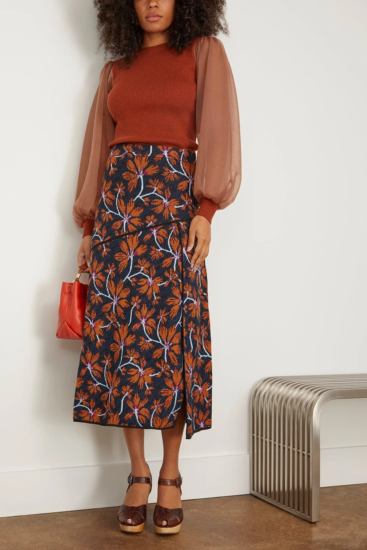 The Ulla Johnson Sabrina Pullover is a beautiful play between texturesa form-fitting bodice spun from Responsible Wool Standard-certified extrafine merino wool and cotton-blend, and a sheer jersey stitch transformed into voluminous long sleeves. This crewneck top makes the perfect companion to a favorite skirt or our handmade denim.