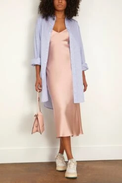 The Ciao Lucia Veneto Dress in Apricot is a raw poplin, pouf-sleeved dress featuring smocking overlay at the bust and a center back zipper closure.