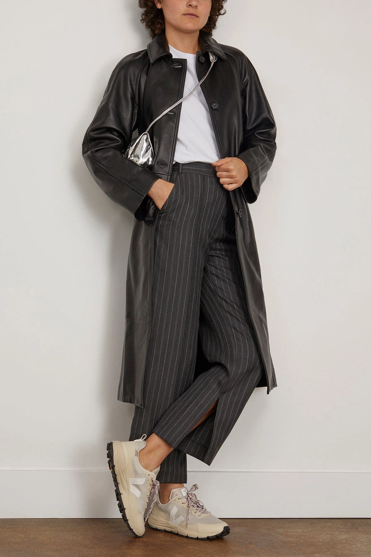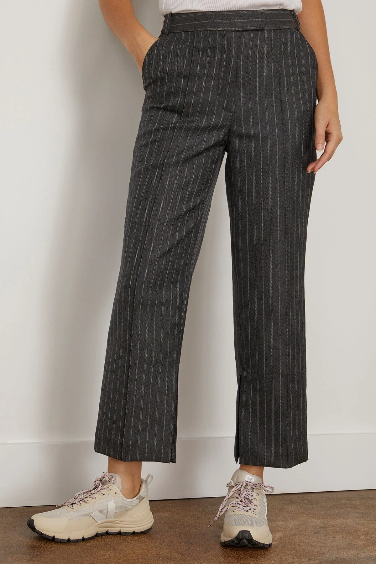 The Simkhai Vera Straight Leg Crop Pant in Grey Pinstripe is a classic straight leg pant. We love it paired with the matching top and heels.